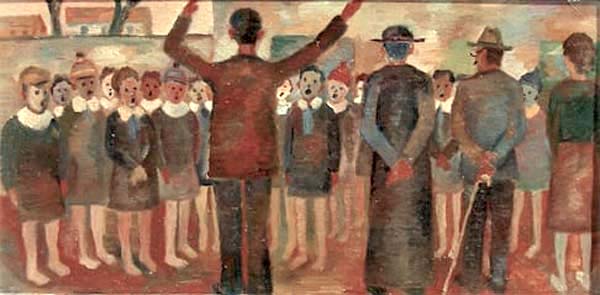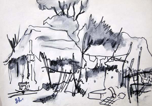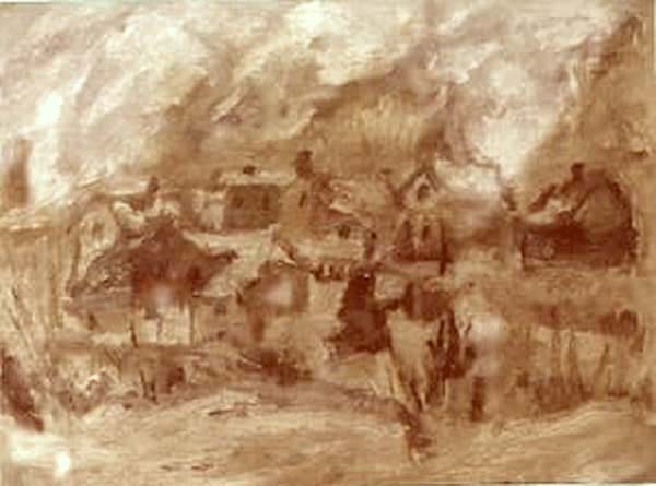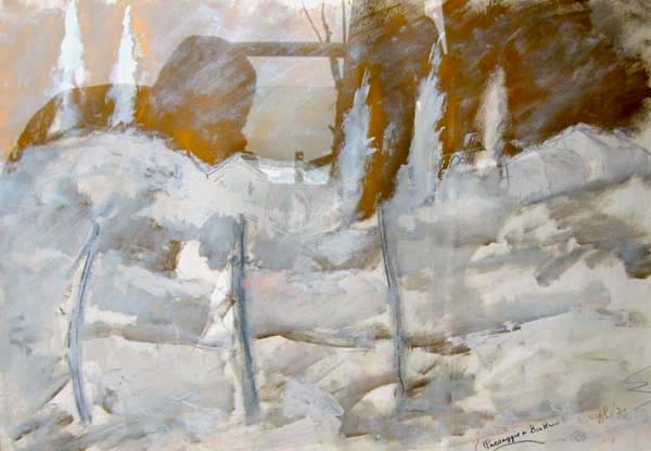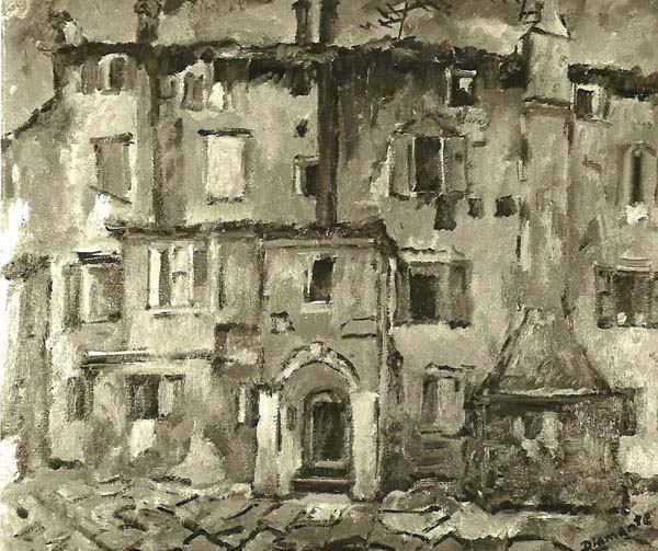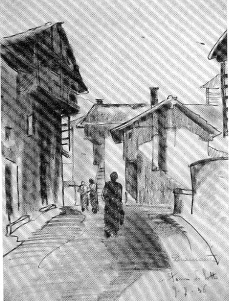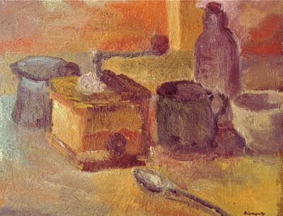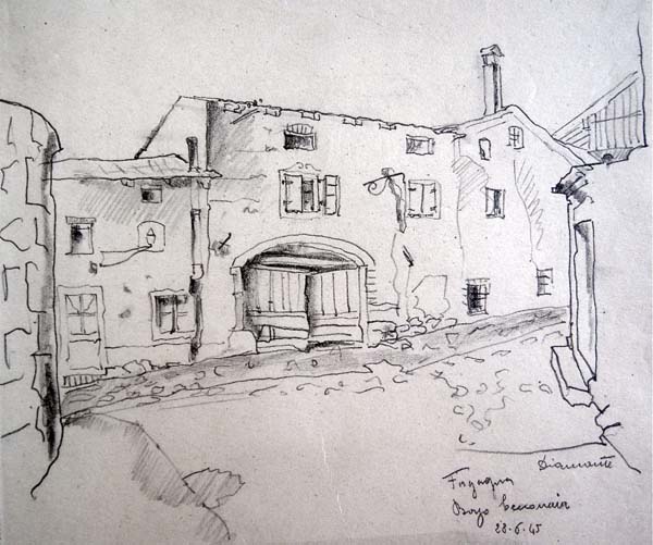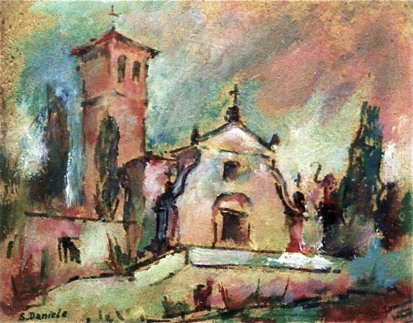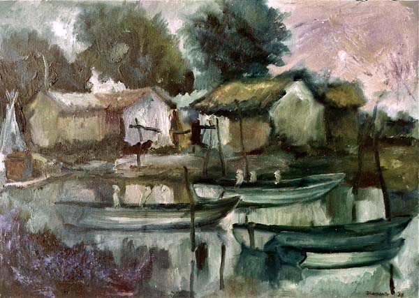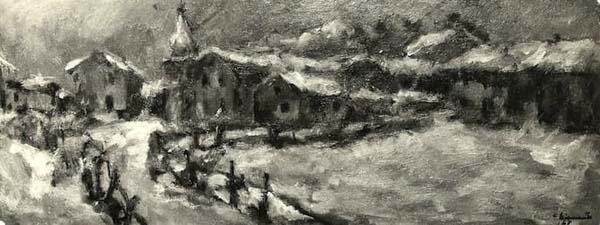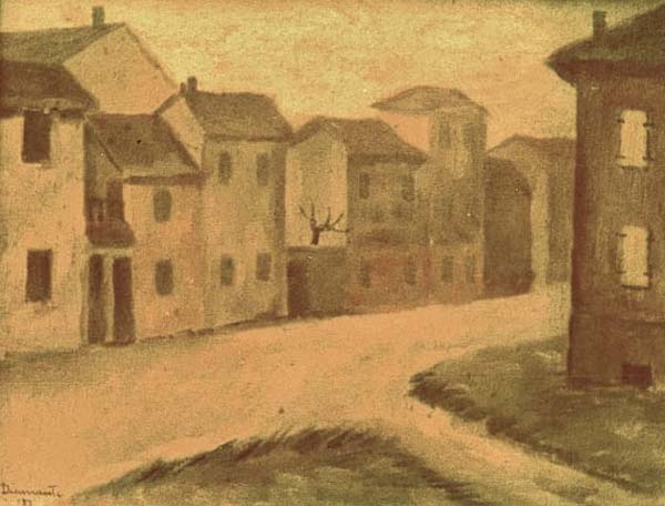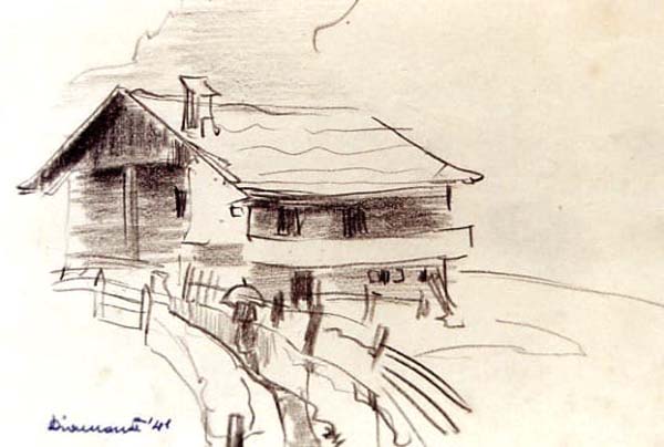 Eppure è una montagna colta con amore, con delicatezza, con tutto il pudore di un animo gentile; una montagna che parla al cuore, sena bisogno d’inutili discorsi. È la Carnia nobilmente povera, ma fiera, cantata da Carducci ne Il comune rustico. Se non siete mai stati in Carnia, guardate questo quadro di Diamante. Quelle due case e quel monte sullo sfondo vi diranno più cose su di essa e sulla sua gente, di quante non potrebbero mai dirne più di cento discorsi.