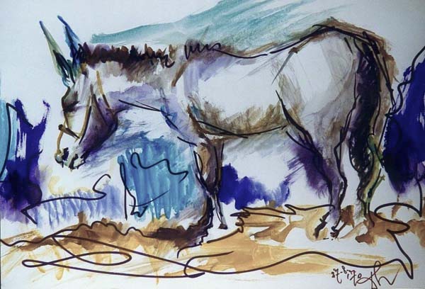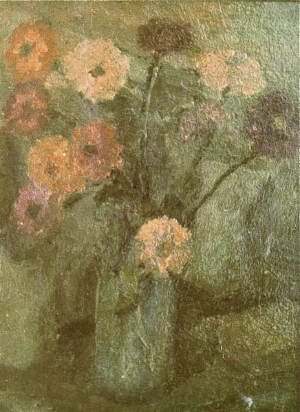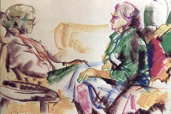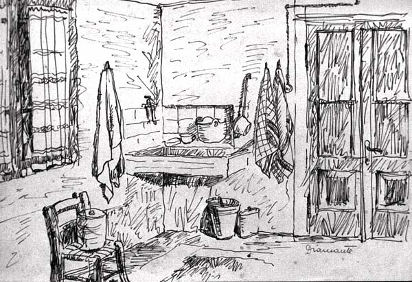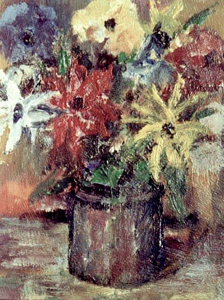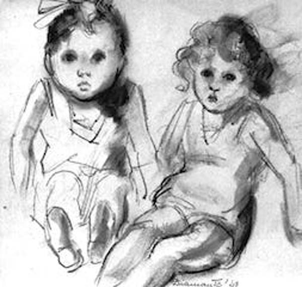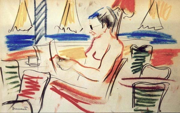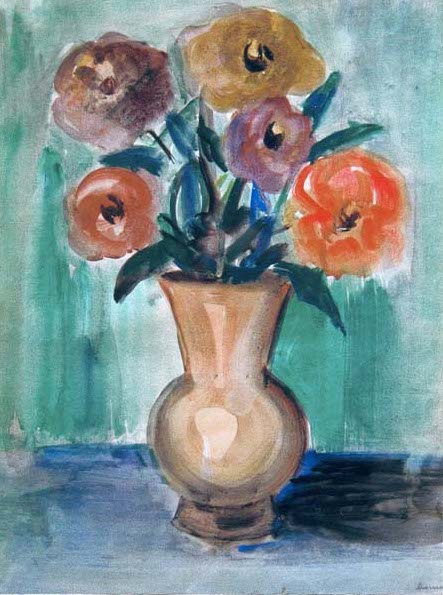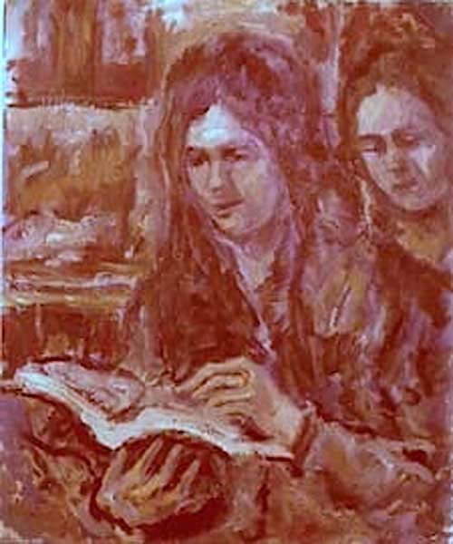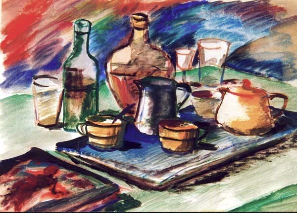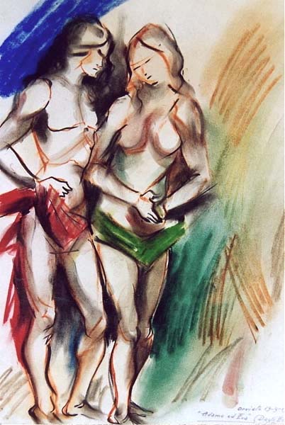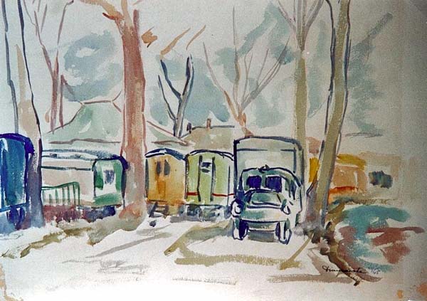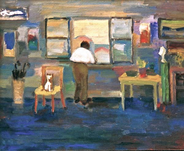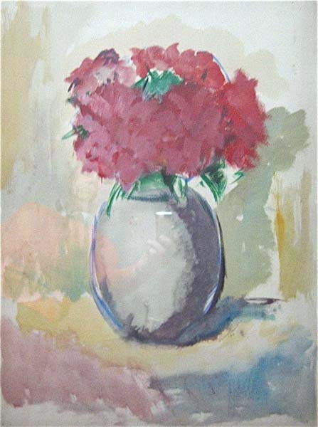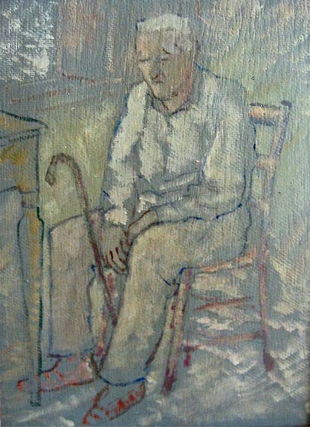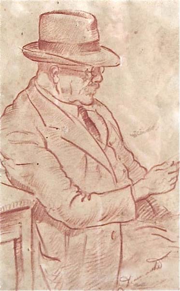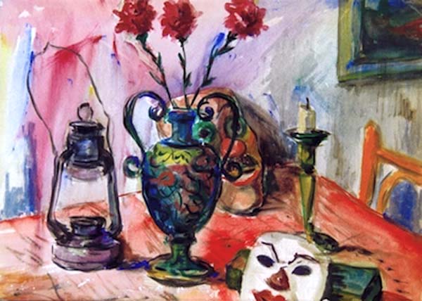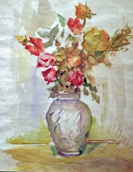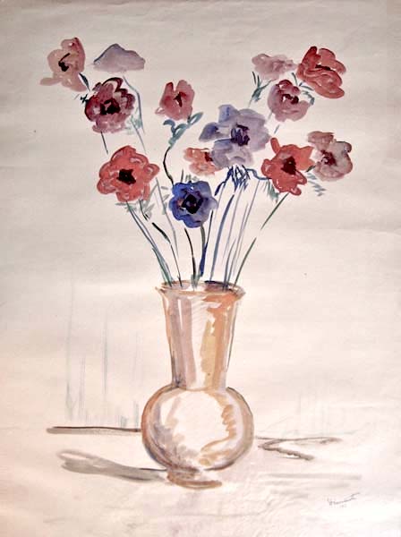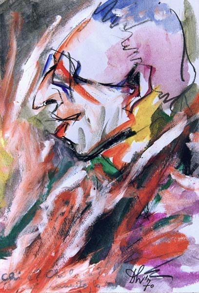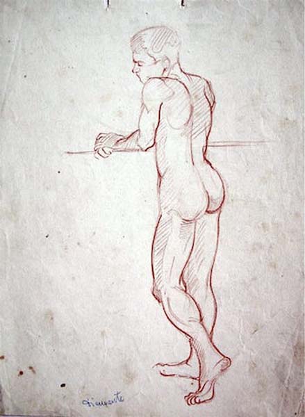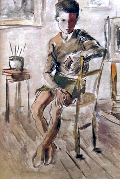 La moglie, Vittorina, lo ha sempre seguito nel suo lavoro; spesso lo invitava (con scarso successo) a non eliminare, ridipingendo ad olio, opere precedenti. Un giorno arrivò a chiedergli una dichiarazione scritta. L’accontentò. Ma posso testimoniare che negli anni seguenti in cui vissi con loro quell’impegno fu più volte disatteso da mio zio… . E la zia continuò a rivolgergli la parola… V.V.