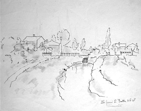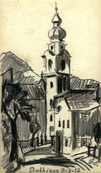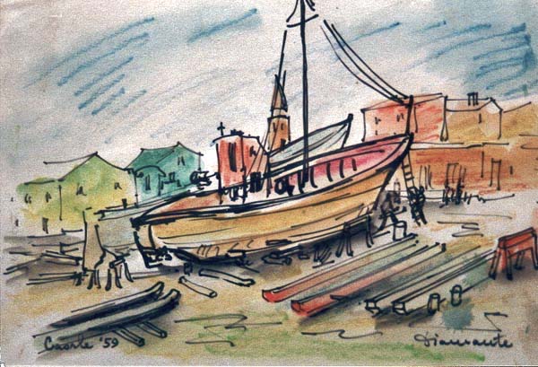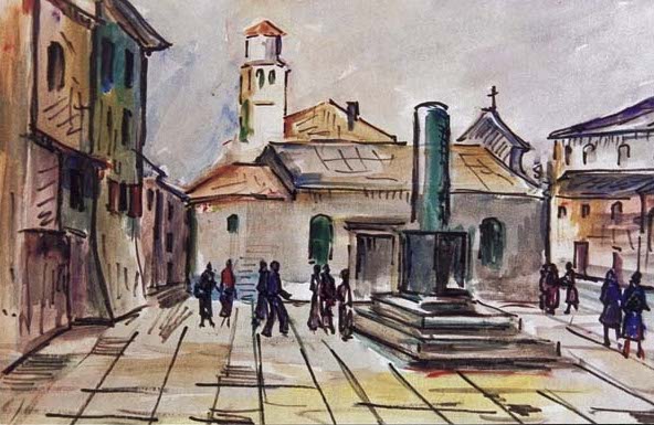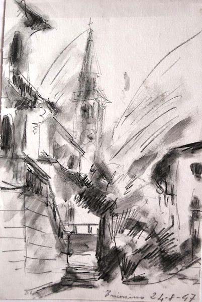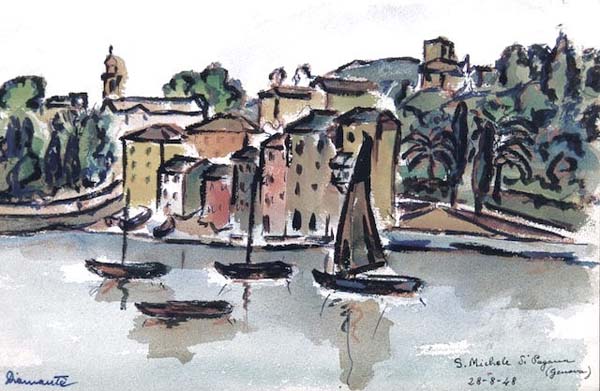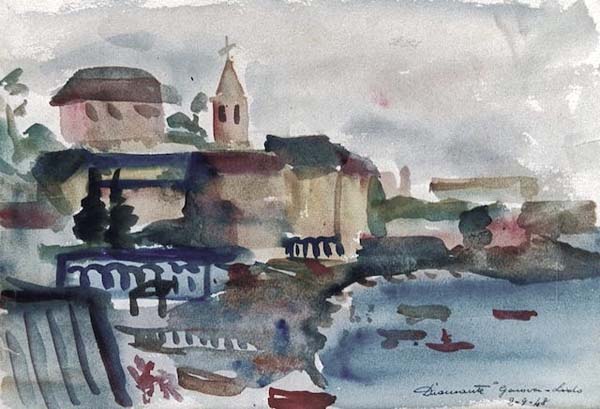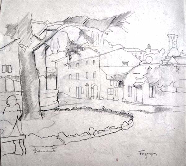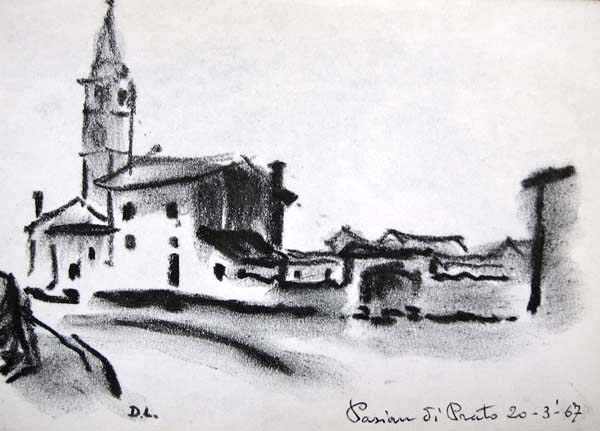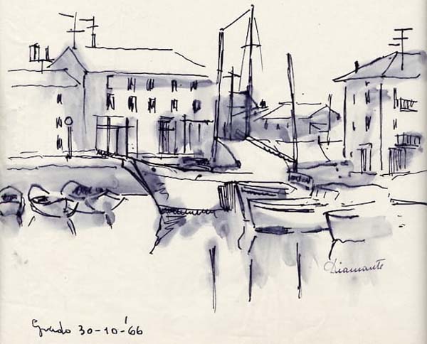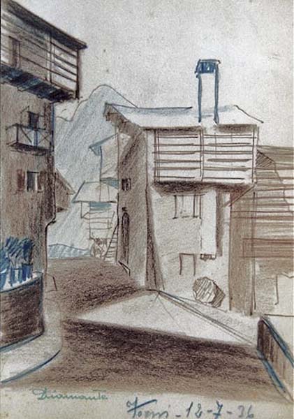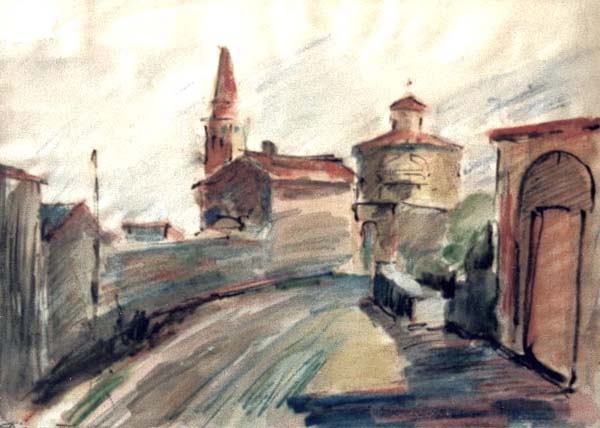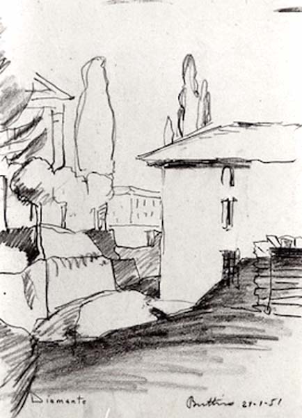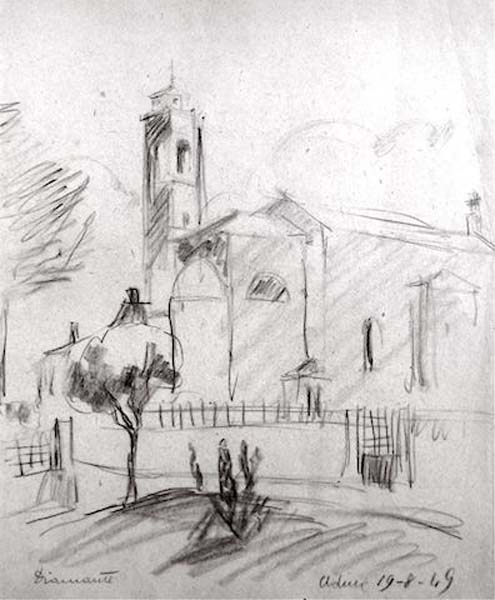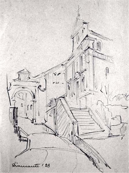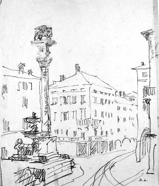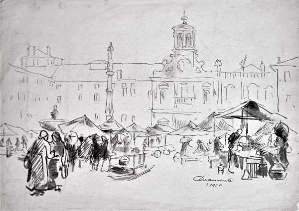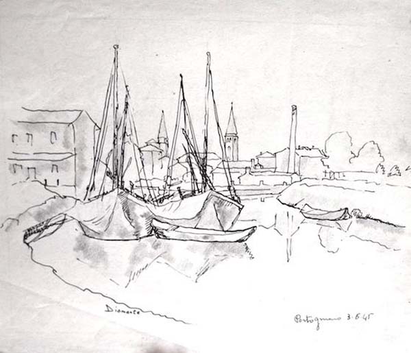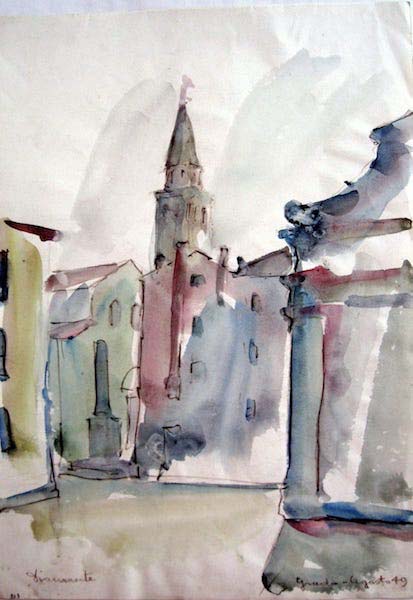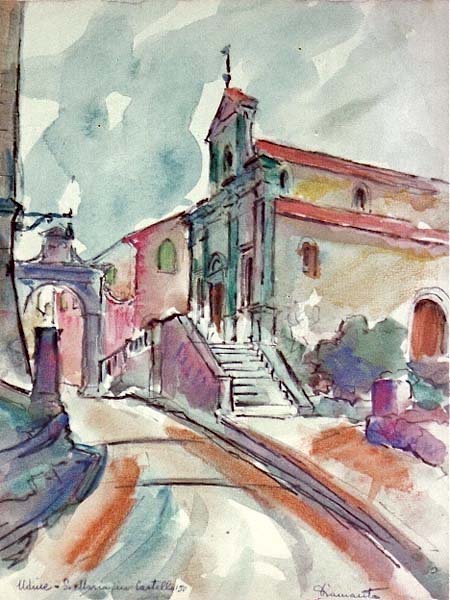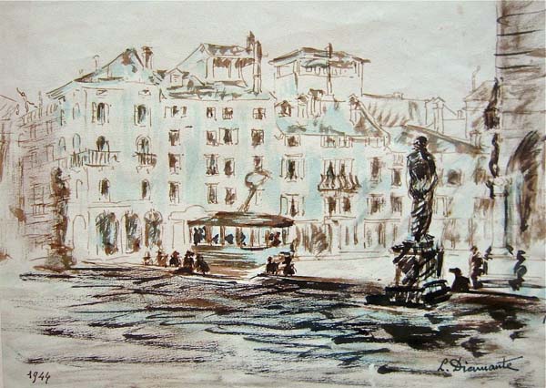 8/4/1948 “…convincente Diamante che aveva due schizzi di figura e tre disegni di paesaggio fra i quali sceglieremmo le due piazze udinesi.” Arturo Manzano.
