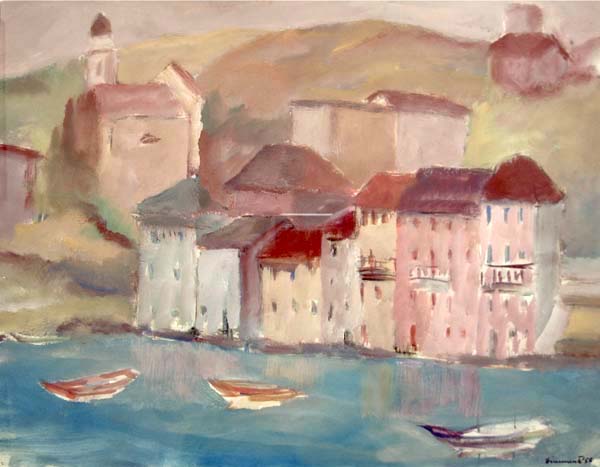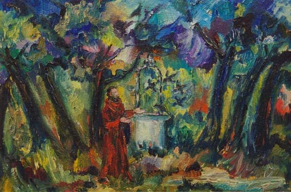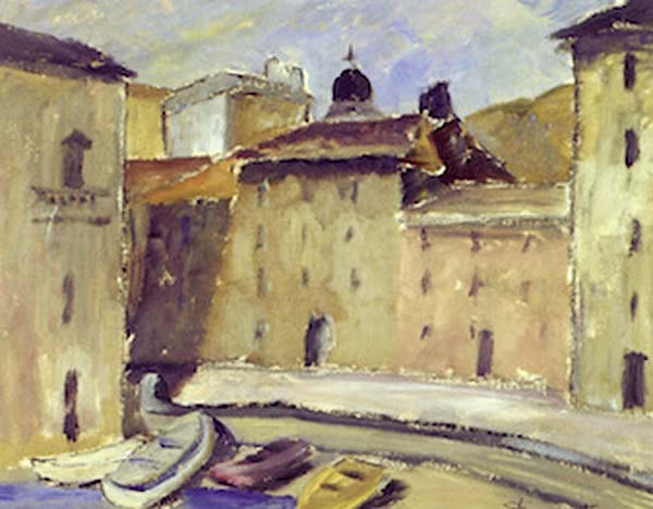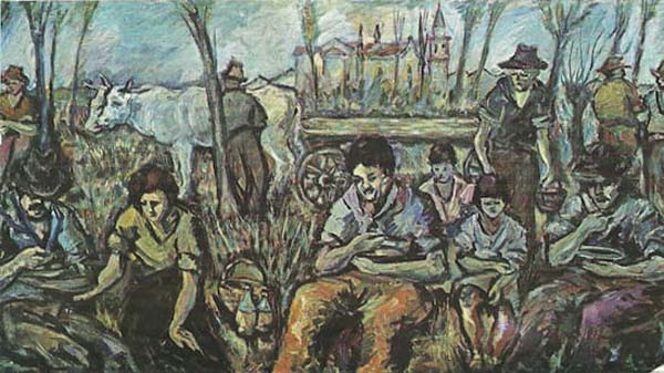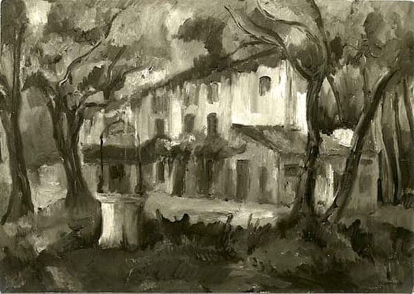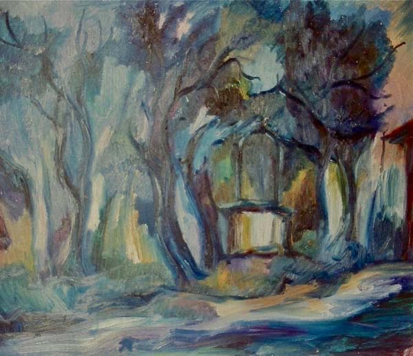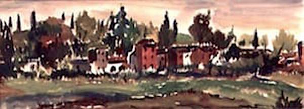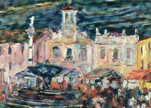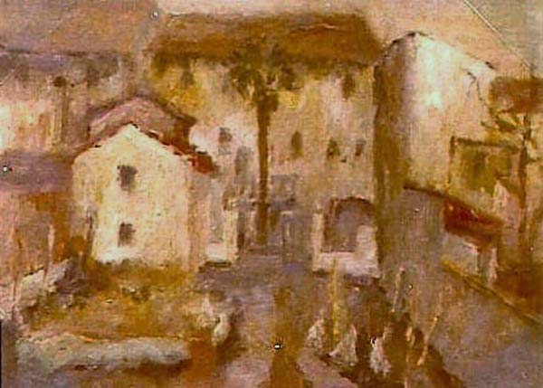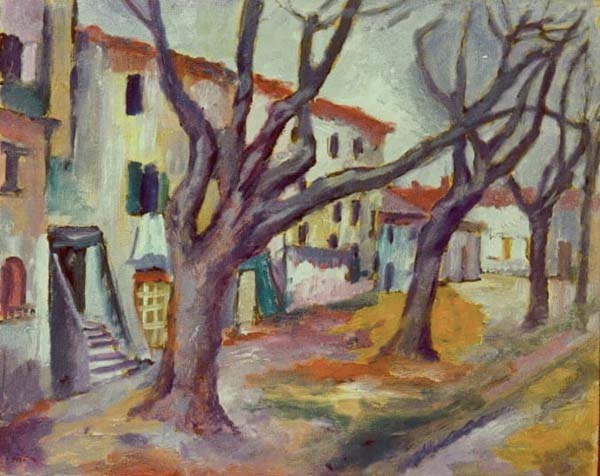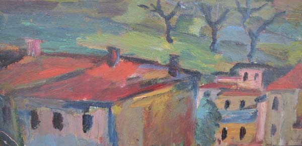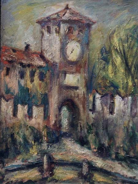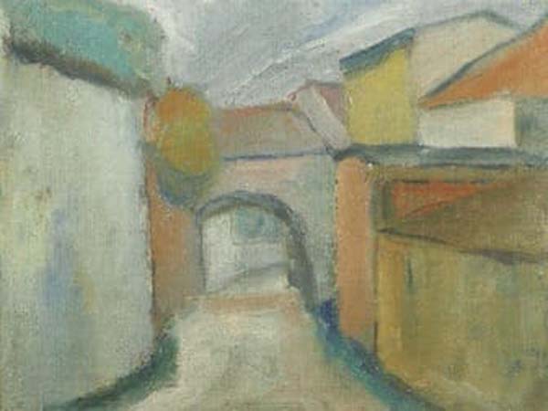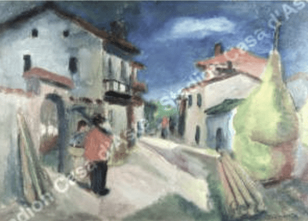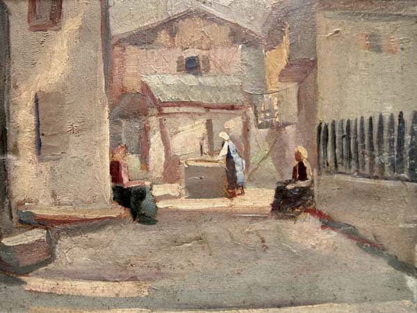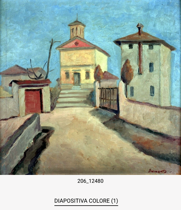 L’opera su cui vogliamo soffermare adesso la nostra attenzione, però, appartiene a una fase più serena e luminosa del percorso artistico di Luigi Diamante. Si tratta della tela a olio intitolata «Forni di Sotto» (cm. 31 x 37), del 1930, e ci immerge in un clima più disteso, dalla tavolozza schiarita e dalla linea più dolce e armoniosa.