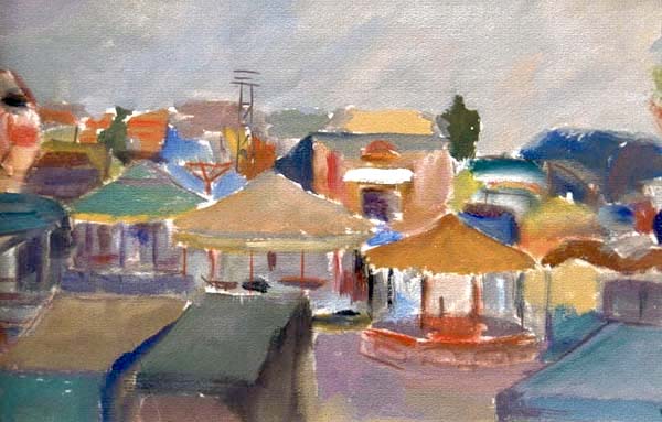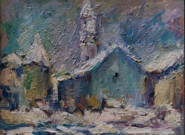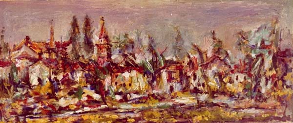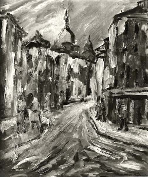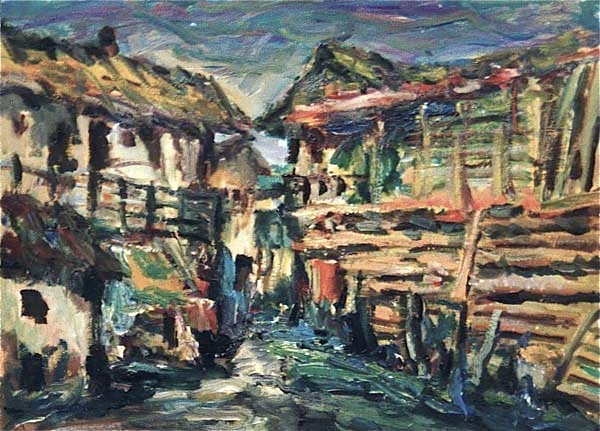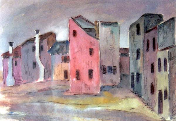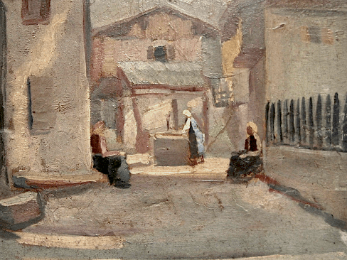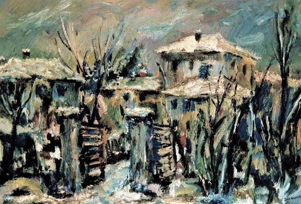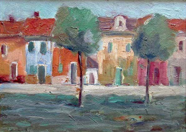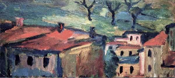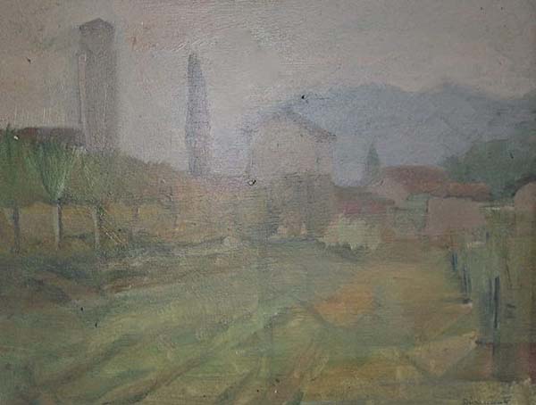 Negli anni Venti e nei primi anni Trenta – il periodo cui appartiene Forni di Sotto – i suoi paesaggi preferiti sono i poveri borghi di paese o della periferia cittadina; le giostre e i baracconi circondati dalle case popolari e da un po’ di verde urbano; qualche orticello o giardinetto racchiuso nella cerchia di vecchi edifici; o, ancora, delle umili abitazioni ricoperte dalla neve, sotto un cielo livido e triste, come nella Montmartre ancor quasi rurale di Maurice Utrillo.