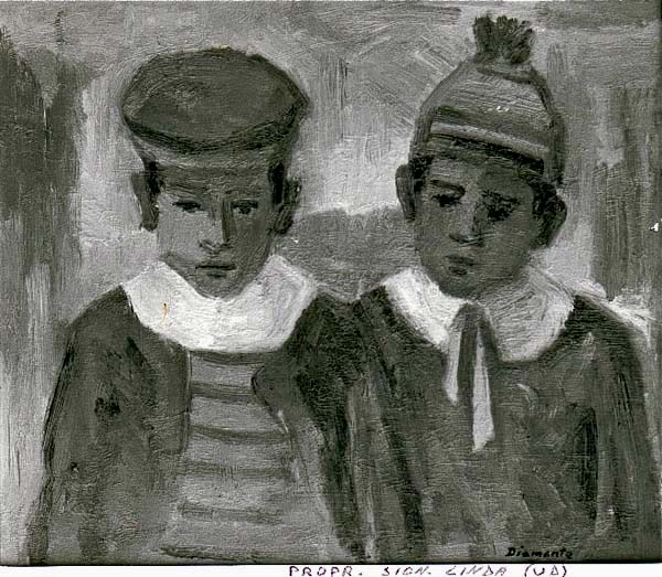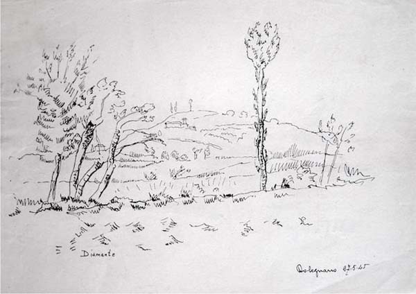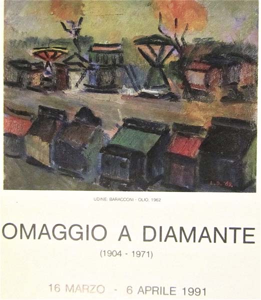 Questo sito è un doveroso omaggio a Diamante, nell’intento di documentare, diffondere e promuovere la sua arte. Una attività artistica durata mezzo secolo: le prime opere degli anni ’20 del secolo scorso; la costante presenza nelle Mostre Sindacali udinesi degli anni ’30, che contribuiva ad organizzare; la decorazione di varie chiese del Friuli; la frequentazione con gli altri artisti con i quali esponeva nelle Mostre Collettive così abituali nel Friuli degli anni’40: Pellis, Pizzinato, Tramontin, Anzil, De Cillia, Coceani, Liusso, Tubaro, Piccini; l’amicizia con Fred Pittino; l’adesione insieme a De Rocco all’ “Academiuta” di Pasolini; i trent’anni da insegnante di disegno; l’evoluzione della sua pittura negli anni ’50 e nei più tormentati ’60; il suo tragico 1971.