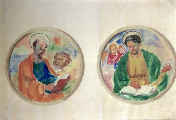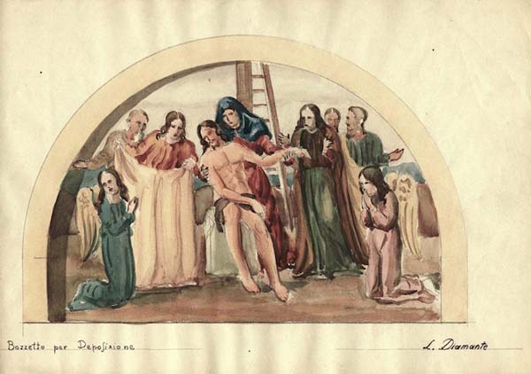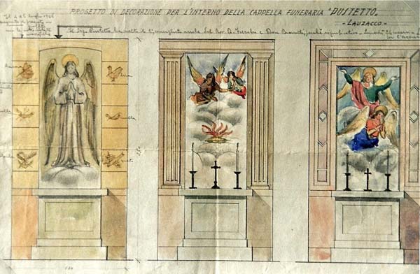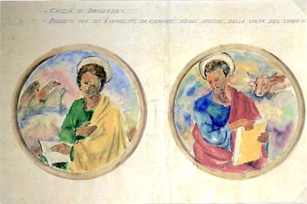 I progetti, insieme ad altri lavori e studi per affreschi nelle chiese di Lauzacco, Driolassa e Godia, insieme a tutto il materiale documentale della carriera artistica, si trovano presso la Biblioteca Comunale di Fossalta di Portogruaro (Ve), paese natale della moglie.