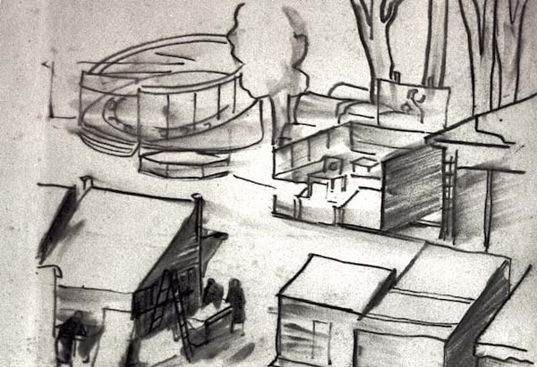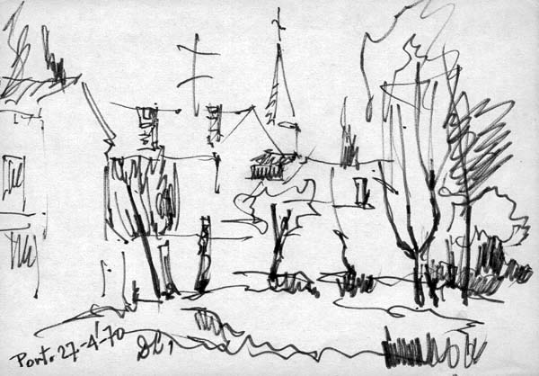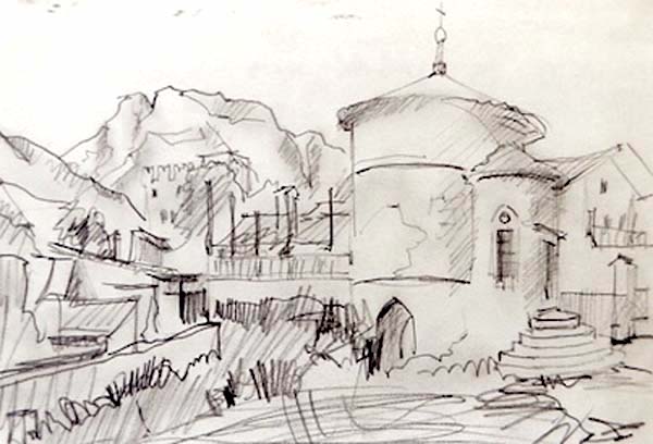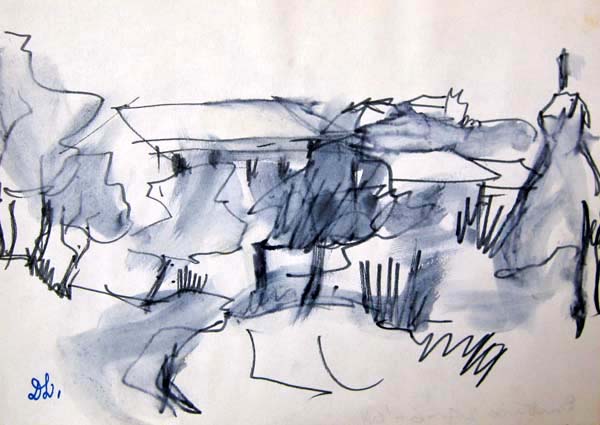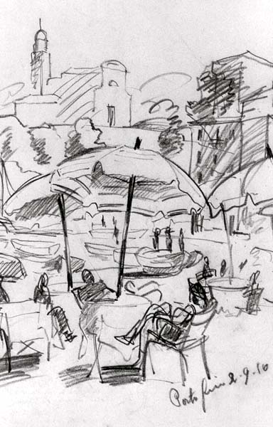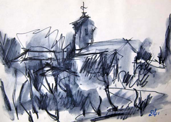 I suoi studenti, li mandava in giro per la città armati di un blocco e una matita. Niente gomma e, soprattutto, niente strumenti: mai, per nessuna ragione. «Quattro segni!» era il suo motto, che non si stancava di ribattere loro nel cervello: intendendo dire che, per esprimere un paesaggio, non c’è bisogno di tanti particolari: bisogna saper andare all’essenziale, cogliere l’anima delle cose. Quattro segni veloci, decisi, senza ripensamenti: quattro segni di matita per catturare una casa, un cortile, una via; per dare vita e movimento a un foglio di carta.