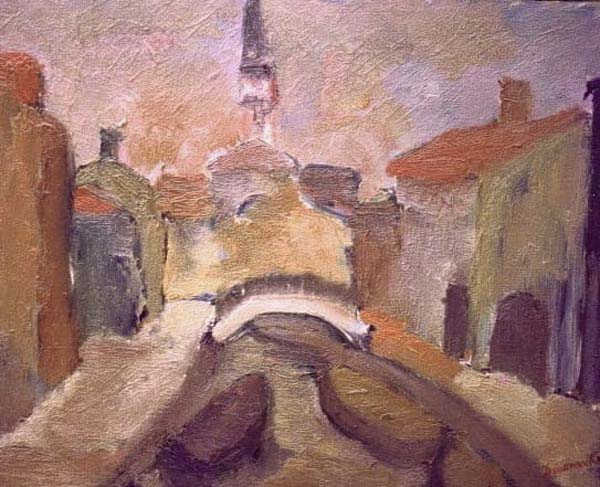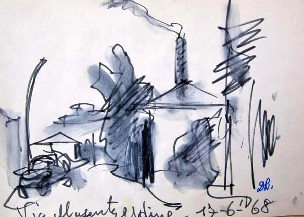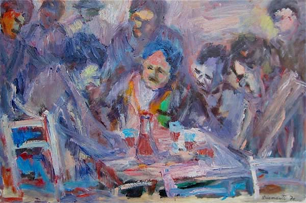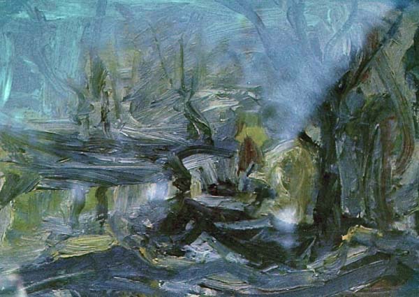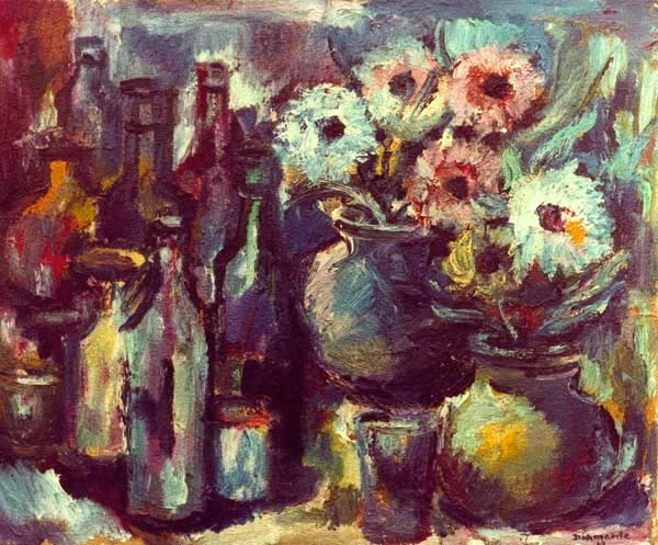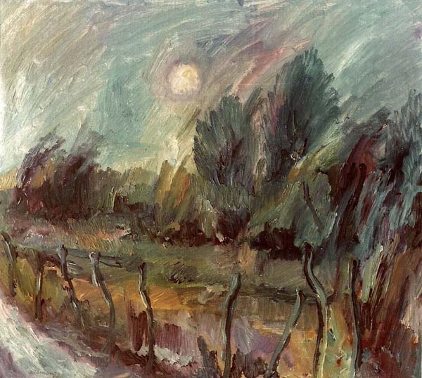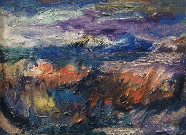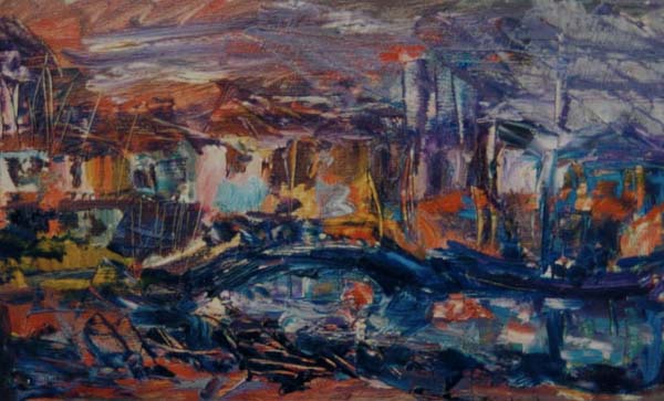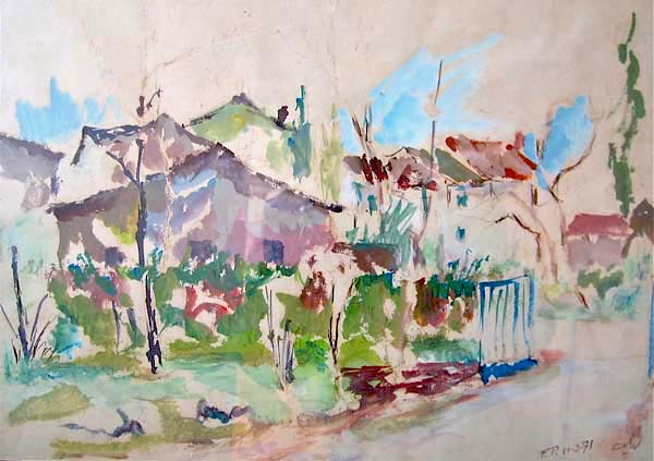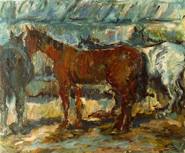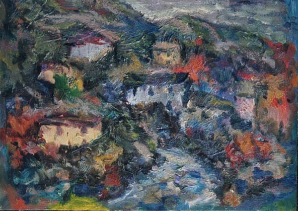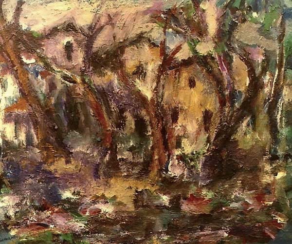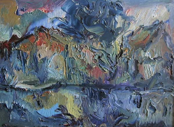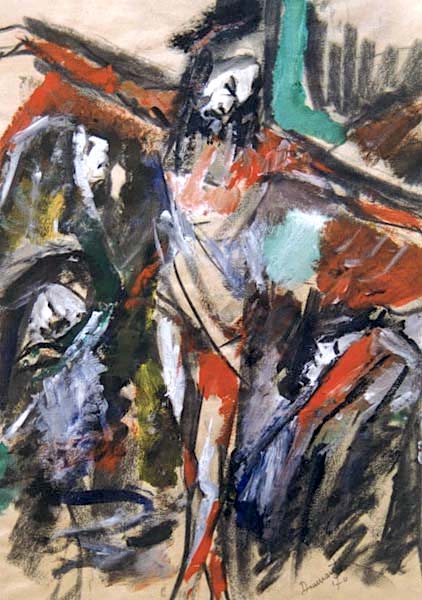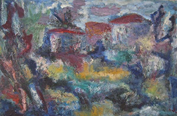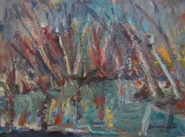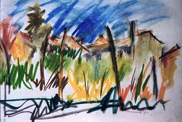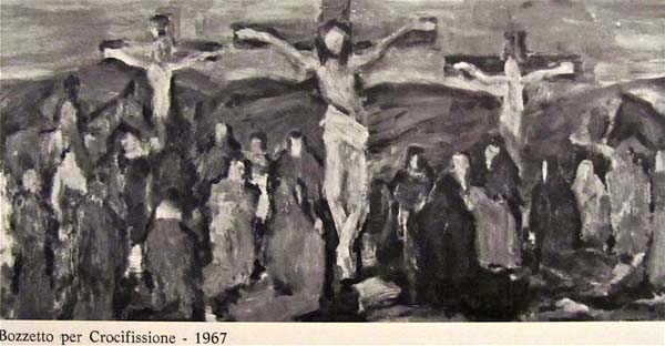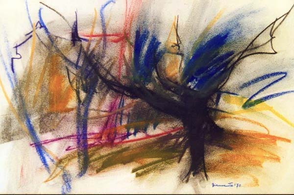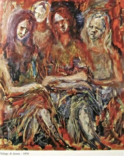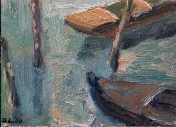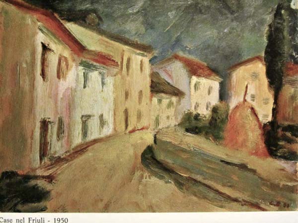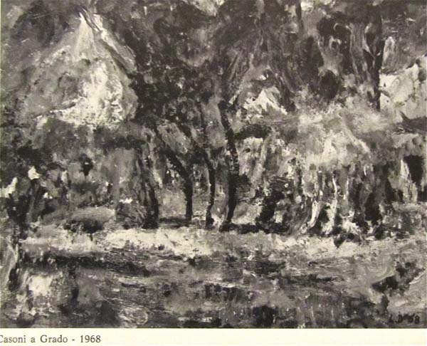 Negli anni sessanta non più tinte chiare; gli azzurri cupi, i verdi marci dominano la tela come l’anima; l’immagine, come l’anima, si sfalda con una muta disperazione, nell’impeto della pennellata impetuosa, talora scomposta. Rabbia o smarrimento: questo trasmette l’impasto, sempre sapiente, sempre carico di emozione poetica, pur in quell’annullarsi espressionista. Tutto questo, però, nel chiuso del suo studio, saturo del suo “io” più segreto. Fuori, invece, immerso nei suoi amati paesaggi friulani o del veneto orientale, nel disegno, nei veloci pastelli nei quali è l’immagine che comanda, non il pensiero, la natura del mondo, non la propria, lì, all’aperto, lì sono le pause di riposo, con tratti e colori ancora sereni e brillanti. Riposo da un tormento interiore che porterà fatalmente e tragicamente al lacerarsi della tela della sua vita.