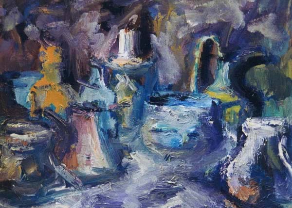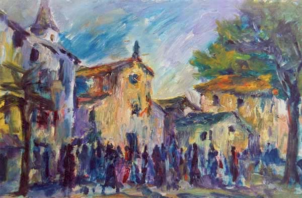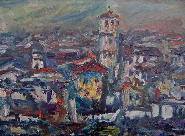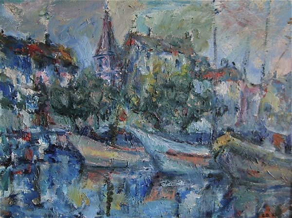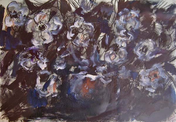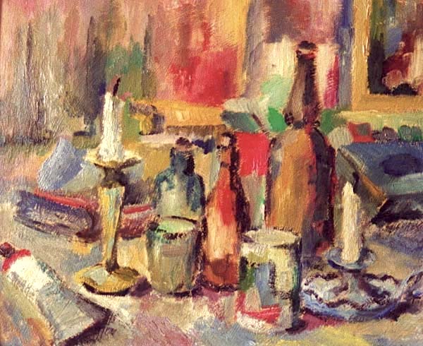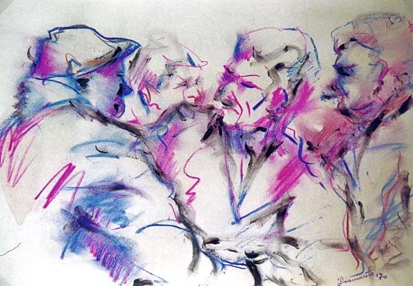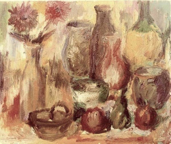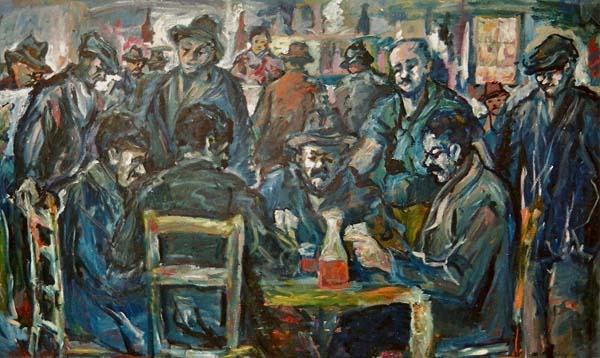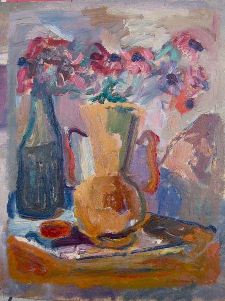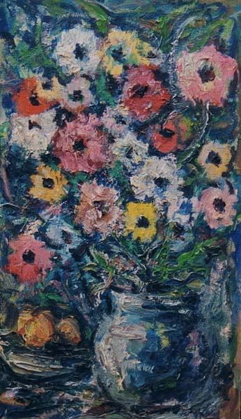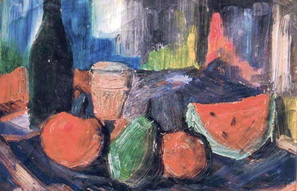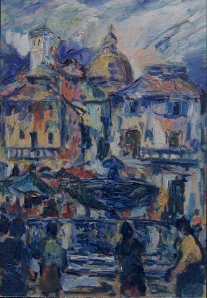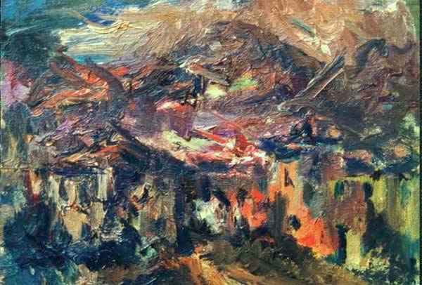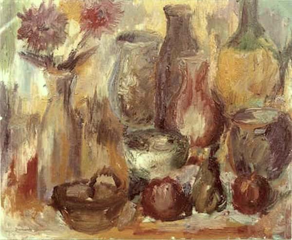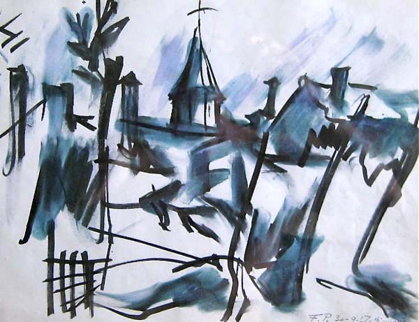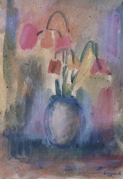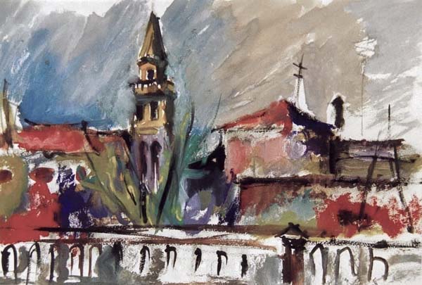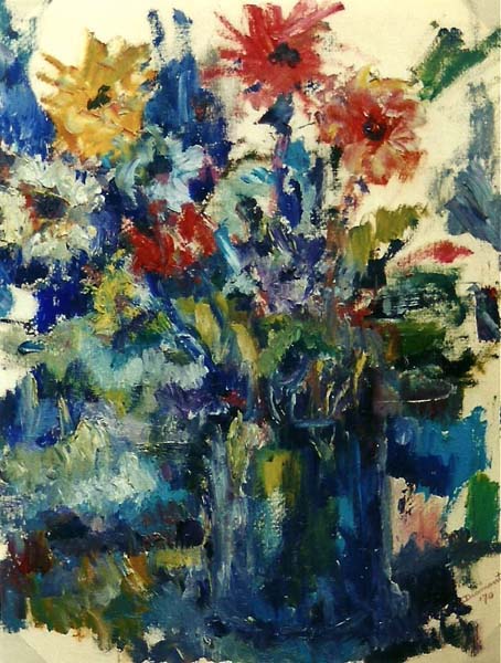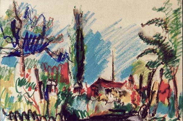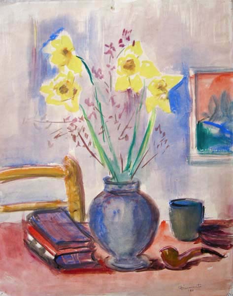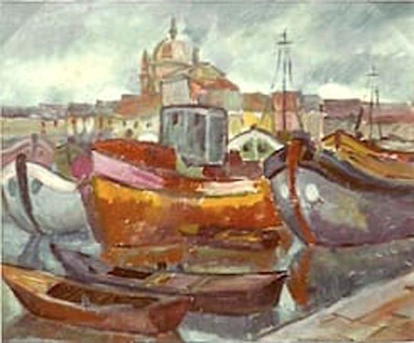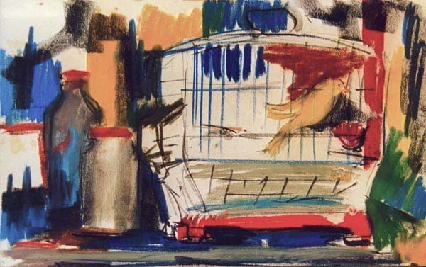 Negli anni sessanta non più tinte chiare; gli azzurri cupi, i verdi marci dominano la tela come l’anima; l’immagine, come l’anima, si sfalda con una muta disperazione, nell’impeto della pennellata impetuosa, talora scomposta. Rabbia o smarrimento: questo trasmette l’impasto, sempre sapiente, sempre carico di emozione poetica, pur in quell’annullarsi espressionista. Tutto questo, però, nel chiuso del suo studio, saturo del suo “io” più segreto. Fuori, invece, immerso nei suoi amati paesaggi friulani o del veneto orientale, nel disegno, nei veloci pastelli nei quali è l’immagine che comanda, non il pensiero, la natura del mondo, non la propria, lì, all’aperto, lì sono le pause di riposo, con tratti e colori ancora sereni e brillanti. Riposo da un tormento interiore che porterà fatalmente e tragicamente al lacerarsi della tela della sua vita.