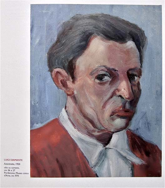 “Luigi Diamante (…);la sua opera ricca, nei momenti migliori, di sapienza professionale,di forza espressiva e di intensità sentimentale. (…) I colori erano chiari, le ombre risentite, come nell’Autoritratto del 1930, ma da tutto emanava una pulizia, una cadenza sommessa, una gioiosità visionaria che era semplicità di sentire. Dopo il 1945 il senso del colore vivo, inteso come materia che si disfà in luce, prevalse sul disegno. E’ il colore, insomma, a costruire la composizione. Si vedano certe Venezie o certi Paesaggi friulani, solari, fragranti di pigmento, crepitanti di succhi intensi e squillanti. Ci sono rossi compatti e violenti, gialli sonanti, improvvisi tocchi di teneri rosati e di verdi. Il quadro sembra comporsi nel momento in cui è osservato, bloccando la luce in una densità sugosa, tutta crepitii e arricciamenti. Lo spirito, però, è ancora sereno. E’ dopo la metà del 1965 che la pittura di Diamante diventa drammatica. Scompaiono le tinte chiare, prendono forza gli azzurri cupi, i verdi marci. L’immagine si scompone e si sfalda nel tormento d’una pennellata impetuosa, piena di foga, sottesa come da una disperazione muta. La composizione narra una vicenda coloristica sincopata, palpitante, sapiente negli impasti, resa con forte carica gestuale, con una sorta di rabbia e di smarrimento. Echi del fratto e violento linguaggio di Kokoschka si intrecciano con l’irruenza materica derivata forse da Pollock e con la drammaticità cupa di Roualt. La serenità degli anni precedenti è come travolta da un furente nichilismo espressionista in cui la bravura tecnica dell’artista esprime anche un’alta emozione poetica.” LICIO DAMIANI