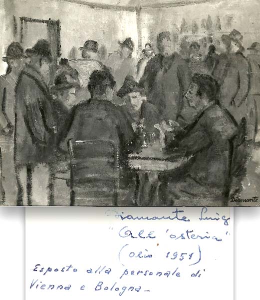 attuando i suoi programmi, è lieto di presentare la rassegna retrospettiva del compianto socio-pittore Luigi Diamante, come testimonianza di operosità, nel corso della sua esistenza, silenziosa e schiva di ogni pubblicità, pur nell’assoluta validità della sua opera.” Vittorio Marangone (8/2/1975)