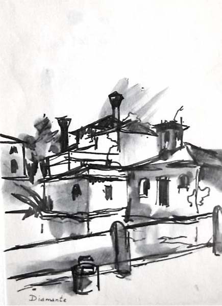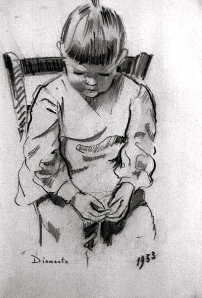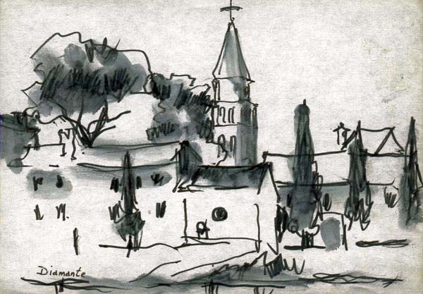 DIAMANTE nasce nel 1904 a Udine. Frequenta il Liceo Artistico a Venezia, lavorando anche come disegnatore presso uno studio di architettura. Rimangono, di quel periodo, una serie di studi e rilievi di edifici e monumenti di Udine, alcuni datati 1922.