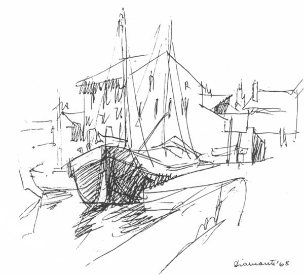 1971 “Diamante, fedele da sempre al figurativo, è uno di quegli artisti per i quali la pittura rappresenta ancora un rifugio di bellezza. E non importa se questa bellezza assume movimenti lirici o drammatici. Essa è sentita sempre come coronamento del reale, come sua forma ideale, in cui non esistono miserie, e l’immagine femminile assume valori simbolici e la pace di un porticciolo può ancora illudere su un ordine immutato delle cose che segue l’antico ordine della natura nel suo flusso e riflusso ricorrente.” LICIO DAMIANI