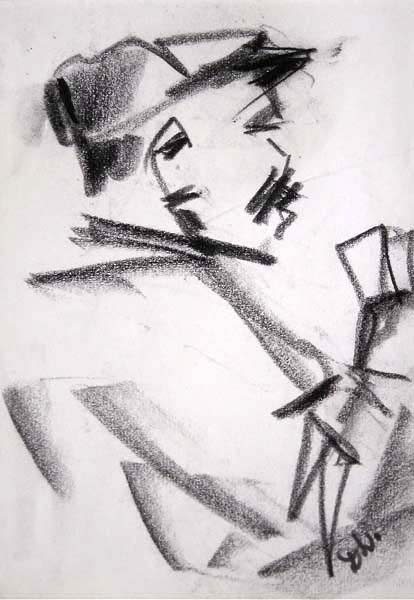 Anche nei disegni, e soprattutto nei ritratti, si nota la tendenza a concretizzare il disvelamento del lato nascosto della realtà, mediante un tratto svelto ed assai vigoroso; una linea che, michelangiolescamente, sembra quasi voler sottrarre ciò che è superfluo, piuttosto che aggiungere elementi compositivi. In un certo senso, i ritratti a matita, ma anche quelli ad olio, come il notevole «Autoritratto» dallo sguardo penetrante e dalla atmosfera vangoghiana, sono anche e soprattutto degli studi psicologici, dei momenti di intensa verità interiore.