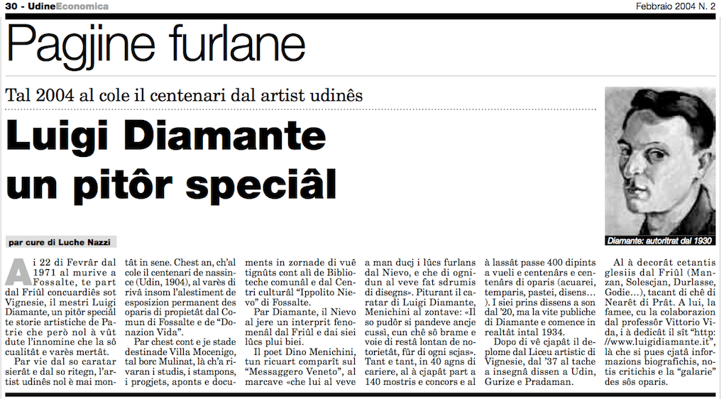 Tal 2004 al cole il centenari dal pitôr udinês Luigi Diamante (Udin 1904 – Fossalte 1971). La famee, cu la colaborazion dal professôr Vittorio Vida (vida.v@libero.it), e à vierzût il sît: www.luigidiamante.it, ch’al proferìs biografie, bibliografie, critiche e oparis dal artist.