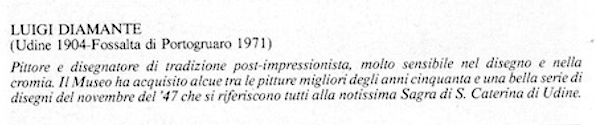 “Luigi Diamante (…) il valido apporto che ha dato all’arte friulana del secondo novecento.” Vittorio Marangone (12/1984)